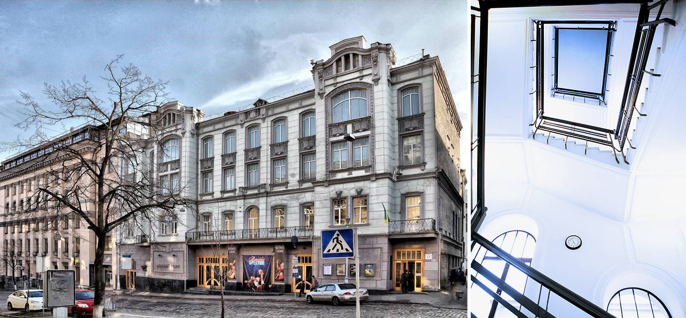 У 1870 році садибу на вулиці Прорізна, 17 придбав «під спорудження мурованого будинку» Микола Григорович-Барський. Через 3 роки проект будинку на два поверхи склав архітектор П. Федоров. У 1902-ому додали третій поверх. У 1912-1913 роках за проектом цивільного інженера О. Гілевича здійснили нову реконструкцію, добудувавши четвертий, а фасад декорували в стилі модерн. До появи в ньому Молодого театру, будинок функціонував як прибутковий, на першому поверсі розміщувалися крамниці.