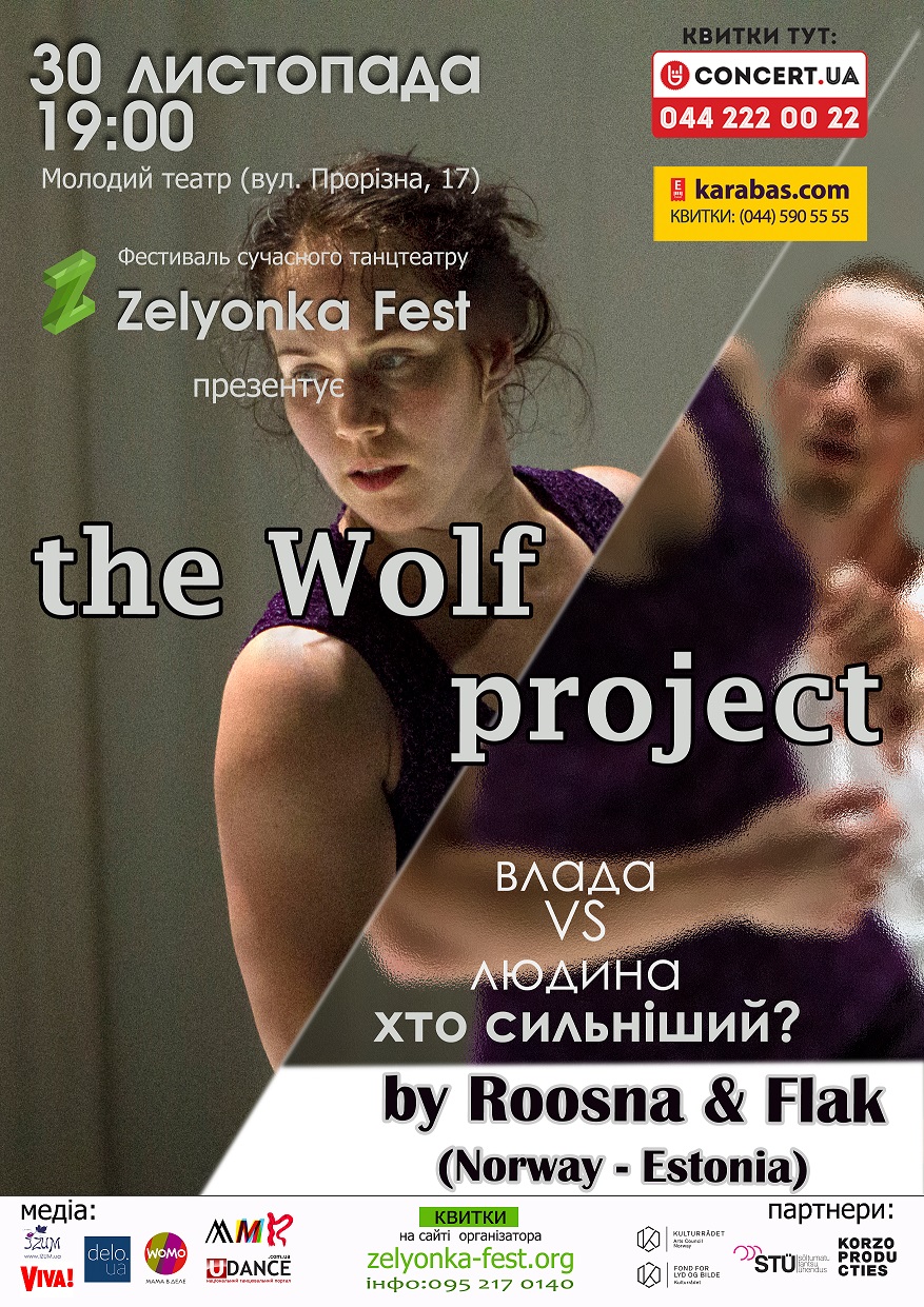 30 листопада Київський Молодий театр приймає естонсько-норвезький танцювальний дует Roosna&Flak та їх найвідомішу виставу "The Wolf Project" (трейлер). Гастролі дуету проходять за підтримки міжнародного фестивалю сучасного танцювального театру Zelyonka Fest.
