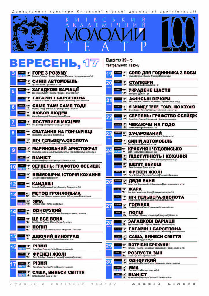 16 серпня 2017 «Ми, група акторів, маємо щось нове сказати, і тому, тільки тому, творимо театр...» 1917р. Лесь Курбас про Молодий.