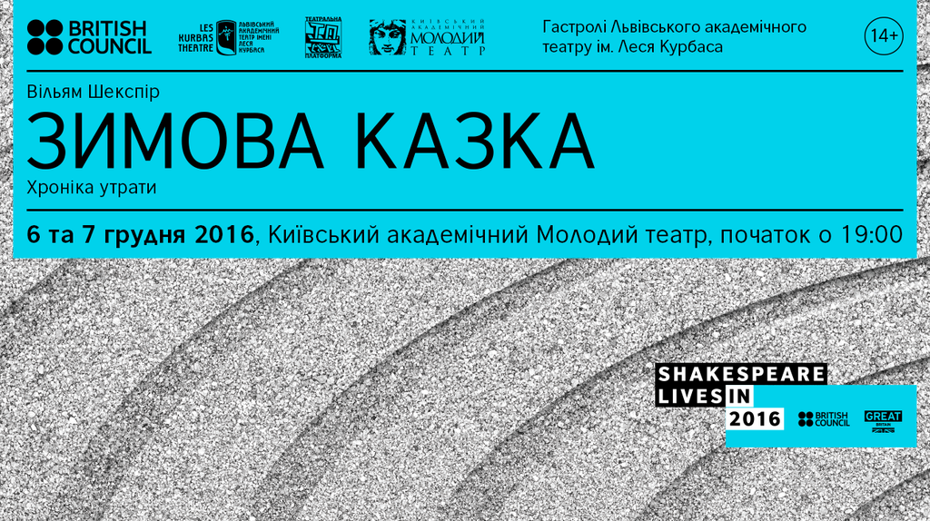 На завершення глобальної кампанії #ShakespeareLives із нагоди 400-ї річниці смерті Шекспіра, 6 та 7 грудня у Молодому театрі в Києві покажуть українську версію п’єси «Зимова Казка». Вперше презентація постановки відбулася 27 березня 2016 року на сцені Львівського академічного театру імені Леся Курбаса.
